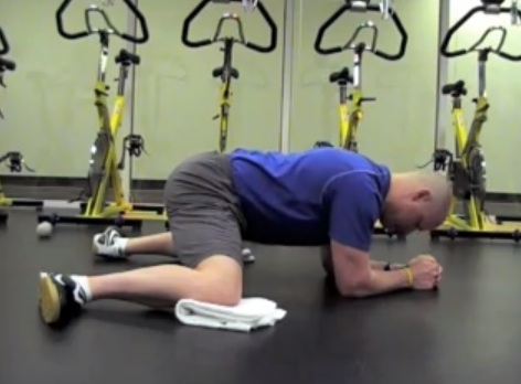 Jeg ser meg rundt. Ingen i umiddelbar nærhet. Jeg trekker høyre fot opp på venstre kne og lener meg over. Dette er en god øvelse for å stretche hoftene. Jeg krummer ryggen og prøver å huske meg rytmisk lenger og lenger ned mot fanget. Det strekker godt på bakside rumpe, i hofta og i korsryggen. Akkurat slik det skal være.