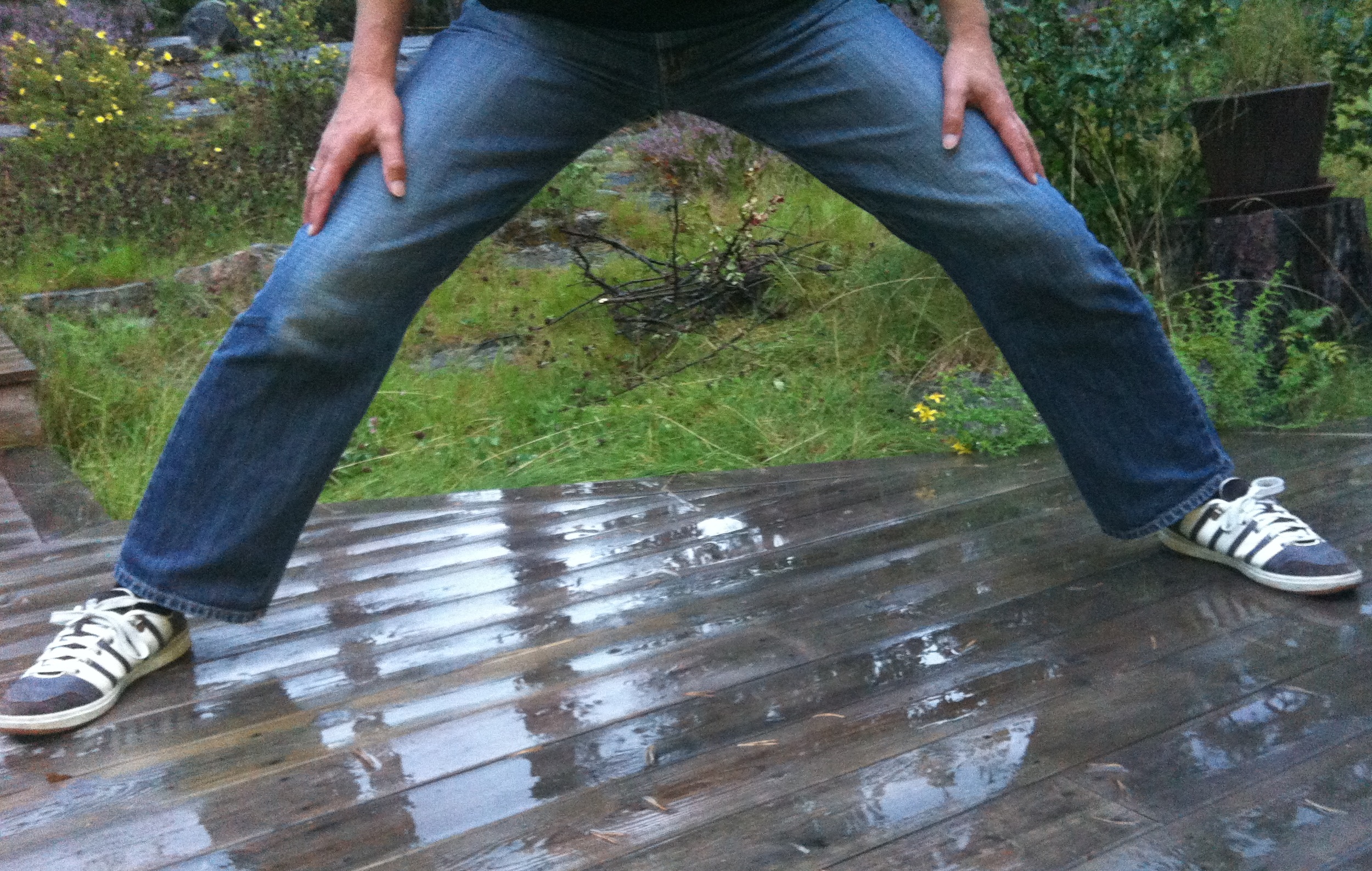 Jeg har lagt til en styrkeøvelse hvor jeg ligger på ryggen med beina rett opp i lufta. Beina føres så ut til siden, holdes et sekund og samles igjen. Som å åpne og lukke en V. Ganske enkelt og greit. I tillegg jogger jeg 8-12 km hver tredje dag.