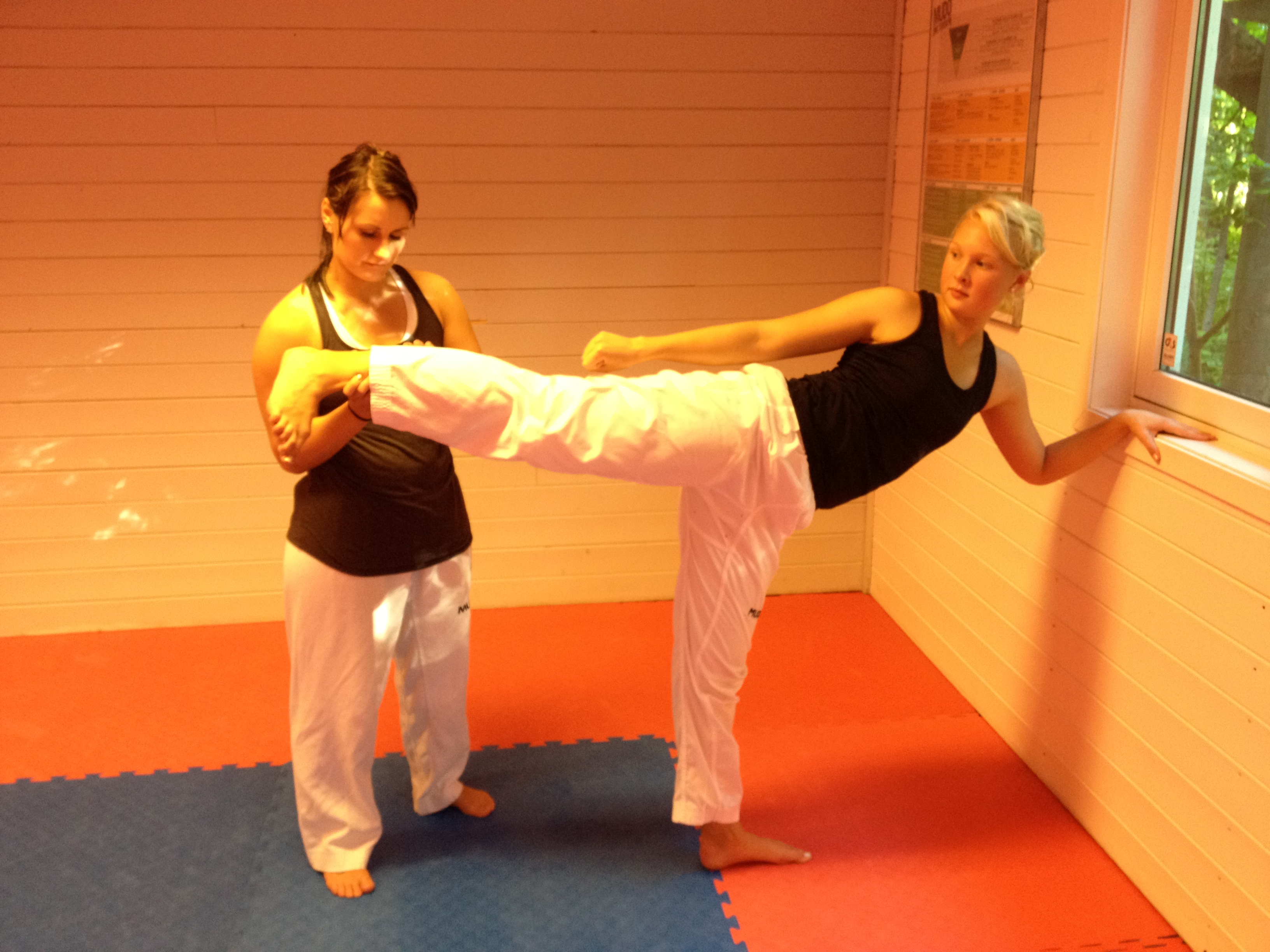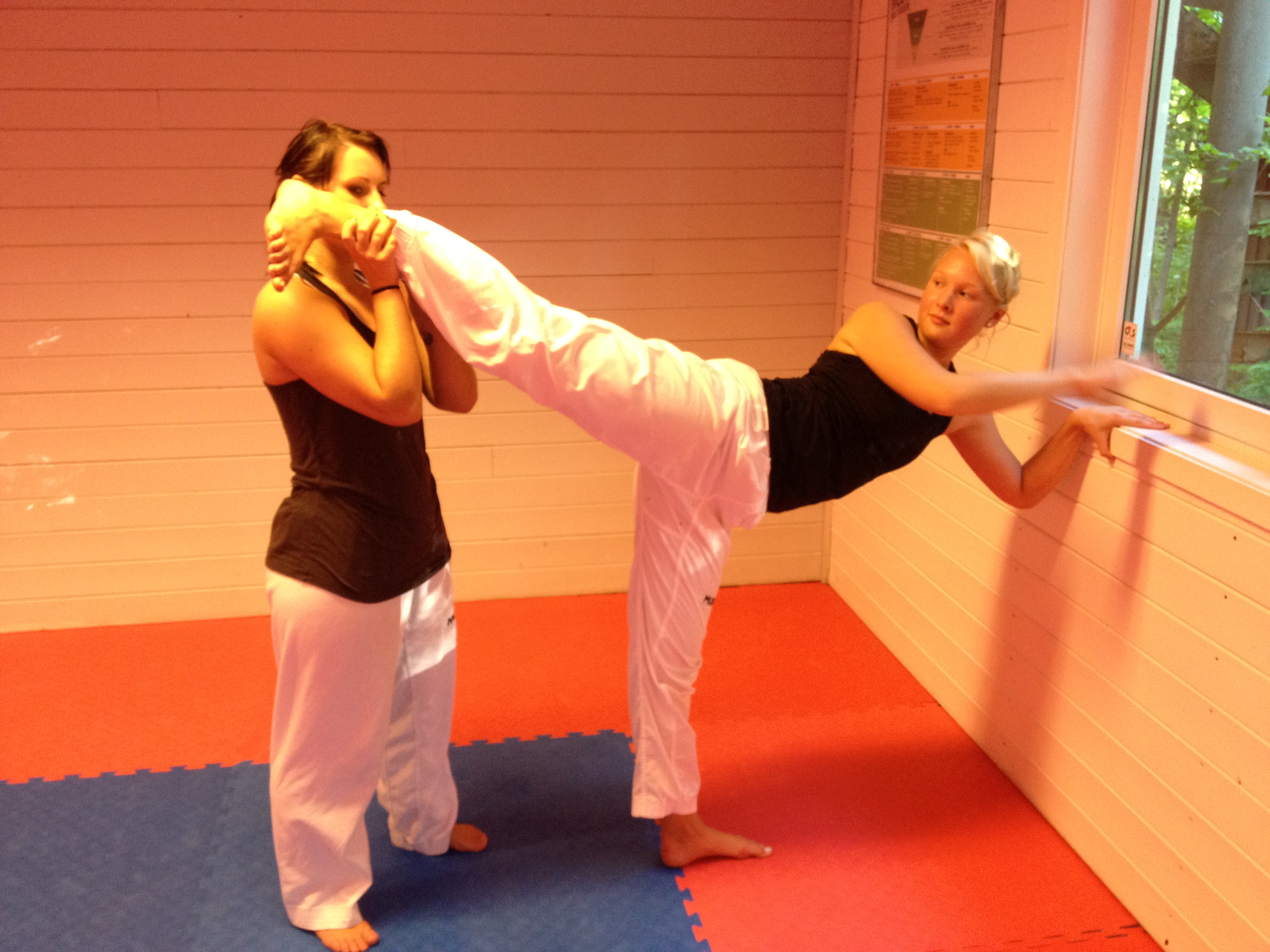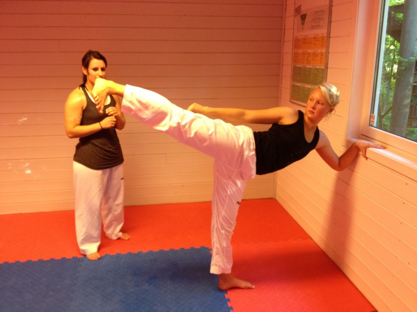 Programmet er lagt opp med fokus på øvelser som bidrar til å kunne sparke høye spark. Stine og Malene tar oss gjennom øvelsene.