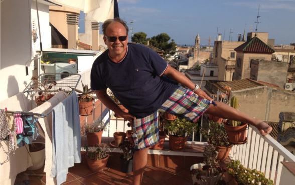 Frode lever livet i Catalonia. Etter en hard dag på stranden er badebuksa vaska, vrengt og hengt til tørk. Cavaen er sprettet og dagens naturlige balkongstretching kan gjennomføres. Med beundrende blikk fra de innfødte kan Frode koste på seg et tilfreds smil.